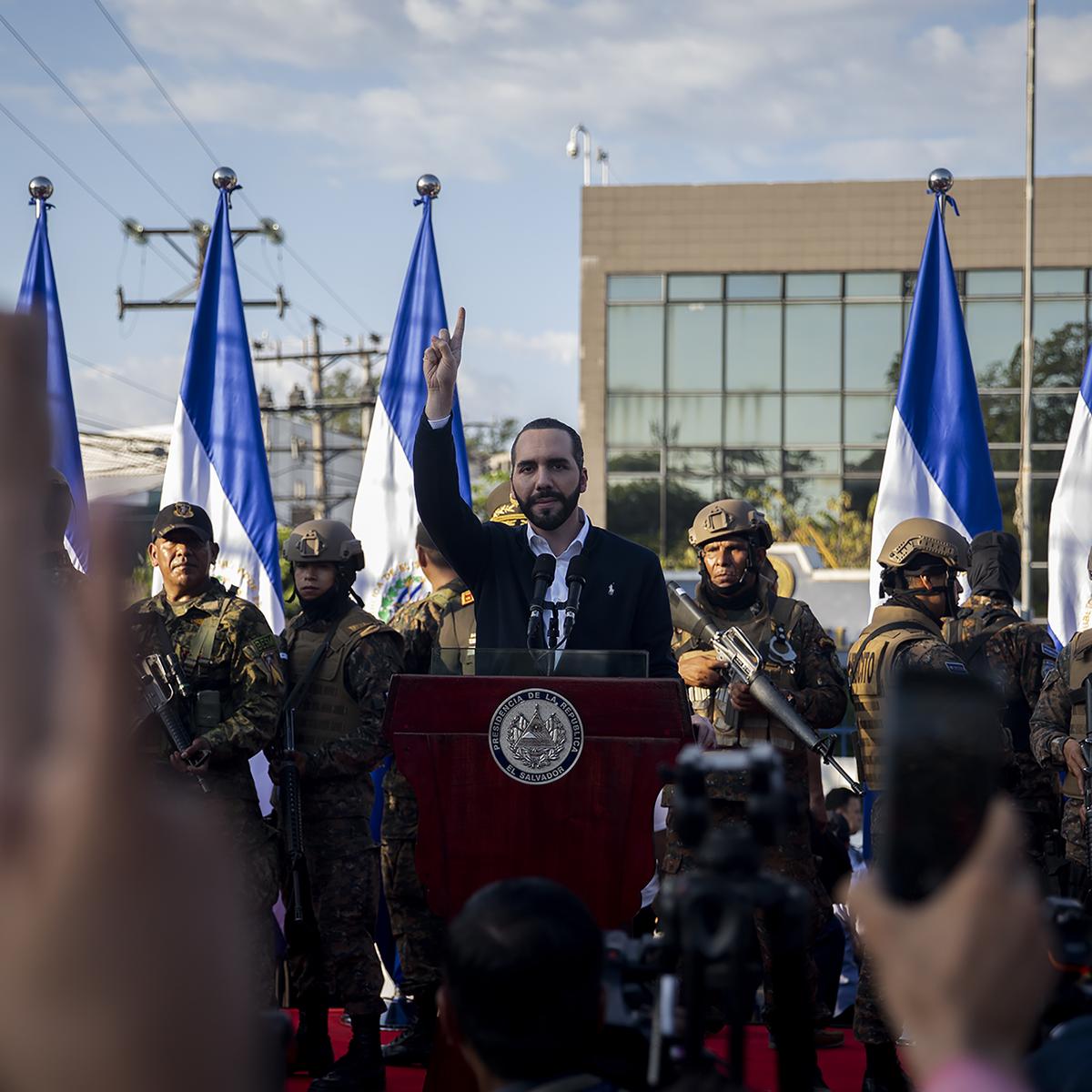 Bukele quiso hablar con Dios y Dios le contestó de inmediato. El show duró un minuto y lo tuvo todo: un protagonista, muchos actores secundarios, militares, tensión, Dios. Y un montón de cámaras, claro.