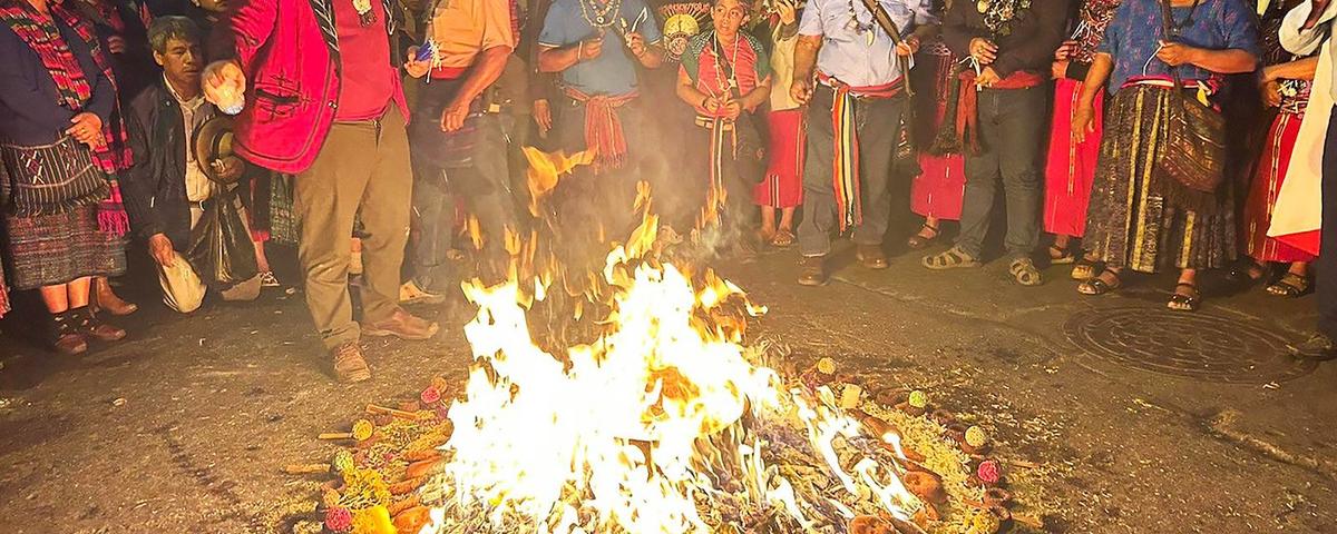 “This ceremony is to thank the Creator for 105 days of resistance, because we have taken this first step toward democracy,” says Feliciana Herrera Ceto, the First Coordinating Mayor of the Ixil Mayan town of Nebaj, her voice reverent, unhurried, as she gazes at the bonfire.