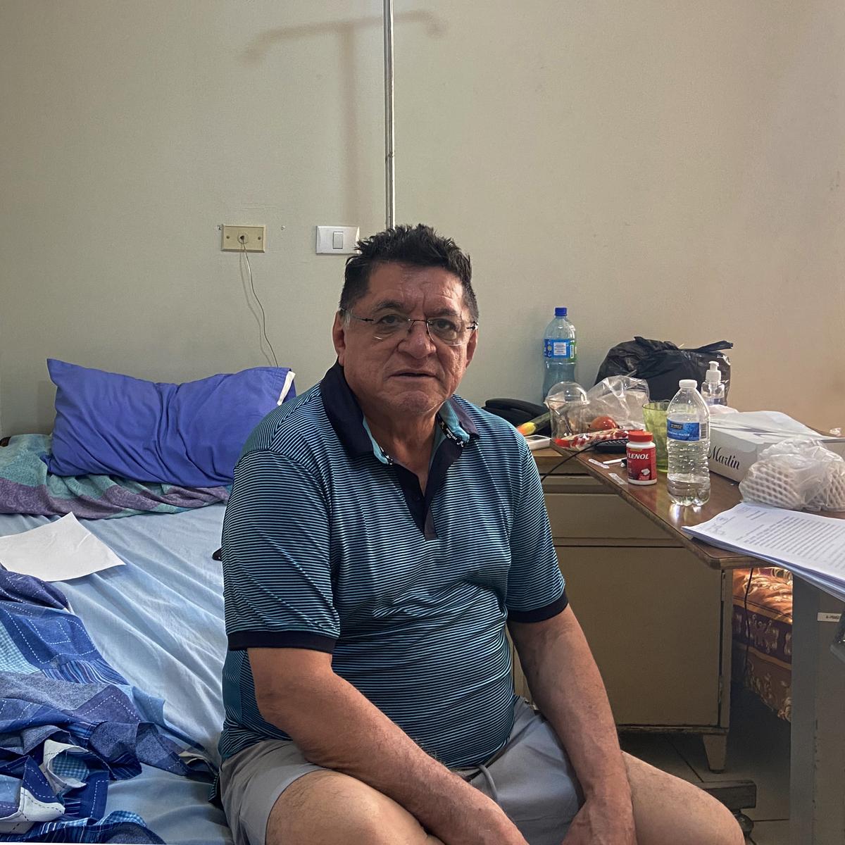 “Buenos días, ¿no tuvieron problemas, vea?”, me pregunta, a modo de saludo, en su iluminada habitación del Hospital Bautista, a unas cuadras del Centro Histórico de San Salvador. Antes de recibirme, lo visitaron algunos familiares y sus abogados. Tiene en la mesa pan dulce, dos guayabas y un vaso de café helado. “No estoy enfermo”, me dice anticipando mi cara de sorpresa. Afirma que es su segunda salida al hospital privado desde que lo detuvieron.