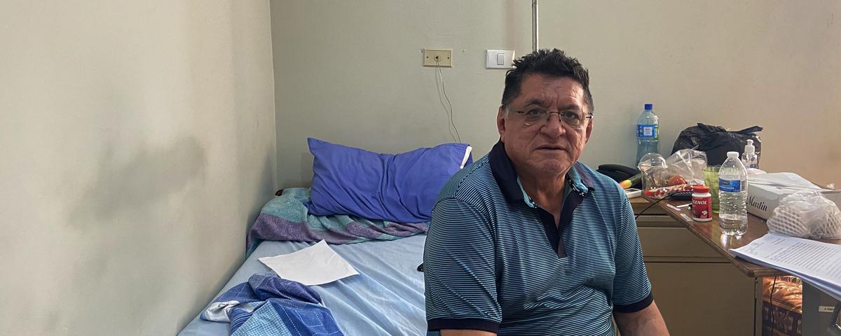 Se declara sano, aunque aclara que su anterior salida sí fue para realizarse exámenes generales de salud y le hicieron “una intervención menor”. Este 16 de mayo dice que no tiene ningún diagnóstico ni hoja clínica en su cuarto. El único medicamento que está tomando lo compró en una farmacia y está en una mesa: un frasco de ibuprofeno marca Tylenol, para el dolor de cabeza. En la hora y media que estuvimos en ese cuarto, ningún médico ni enfermera se acercó a monitorear al paciente-huésped.
